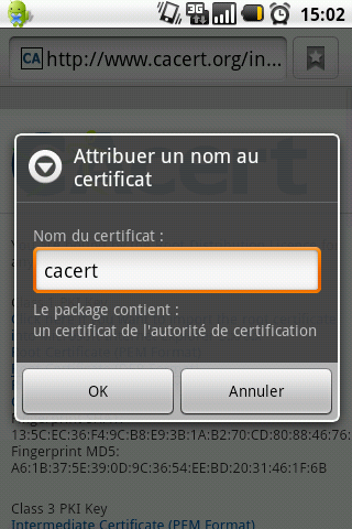 TéléchargementLe paramétrage actuel ne permet pas d'intégrer à la page le fichier class3.crt du fait de son type MIME : application/x-x509-ca-cert.: class3.crt